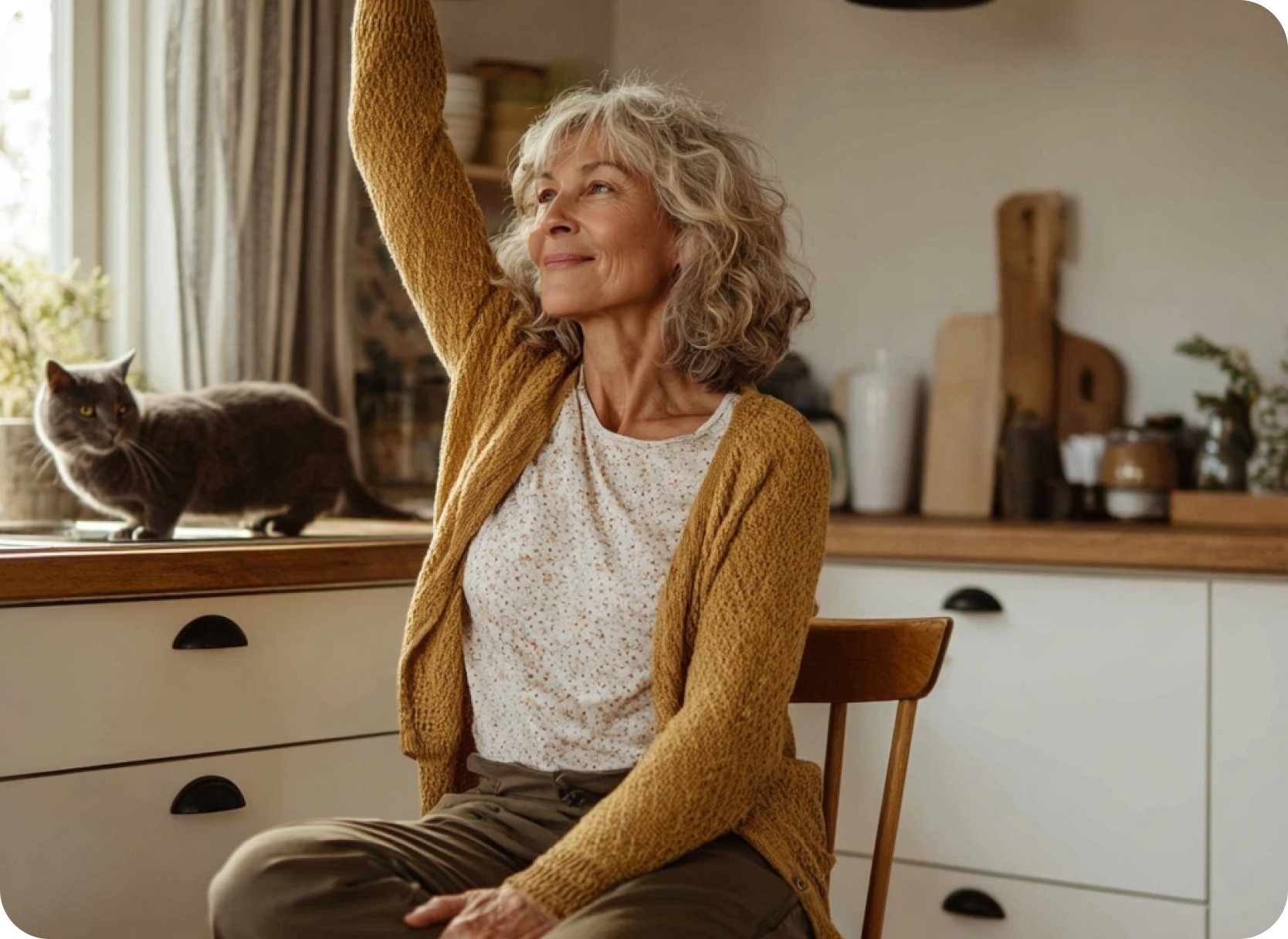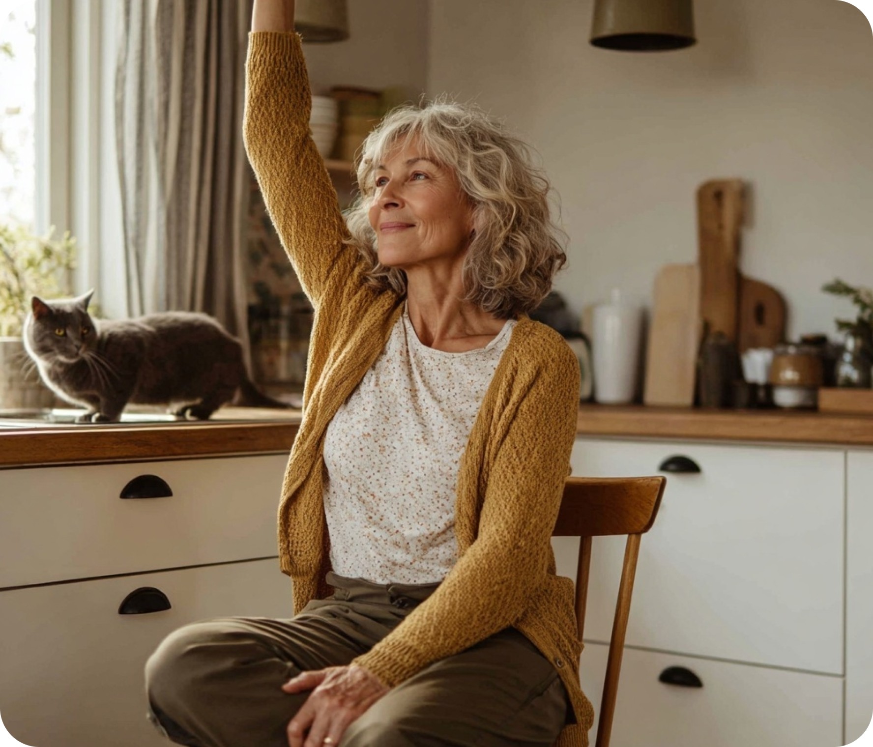 Gentle supported sessions using your bed, chair, and kitchen counter.