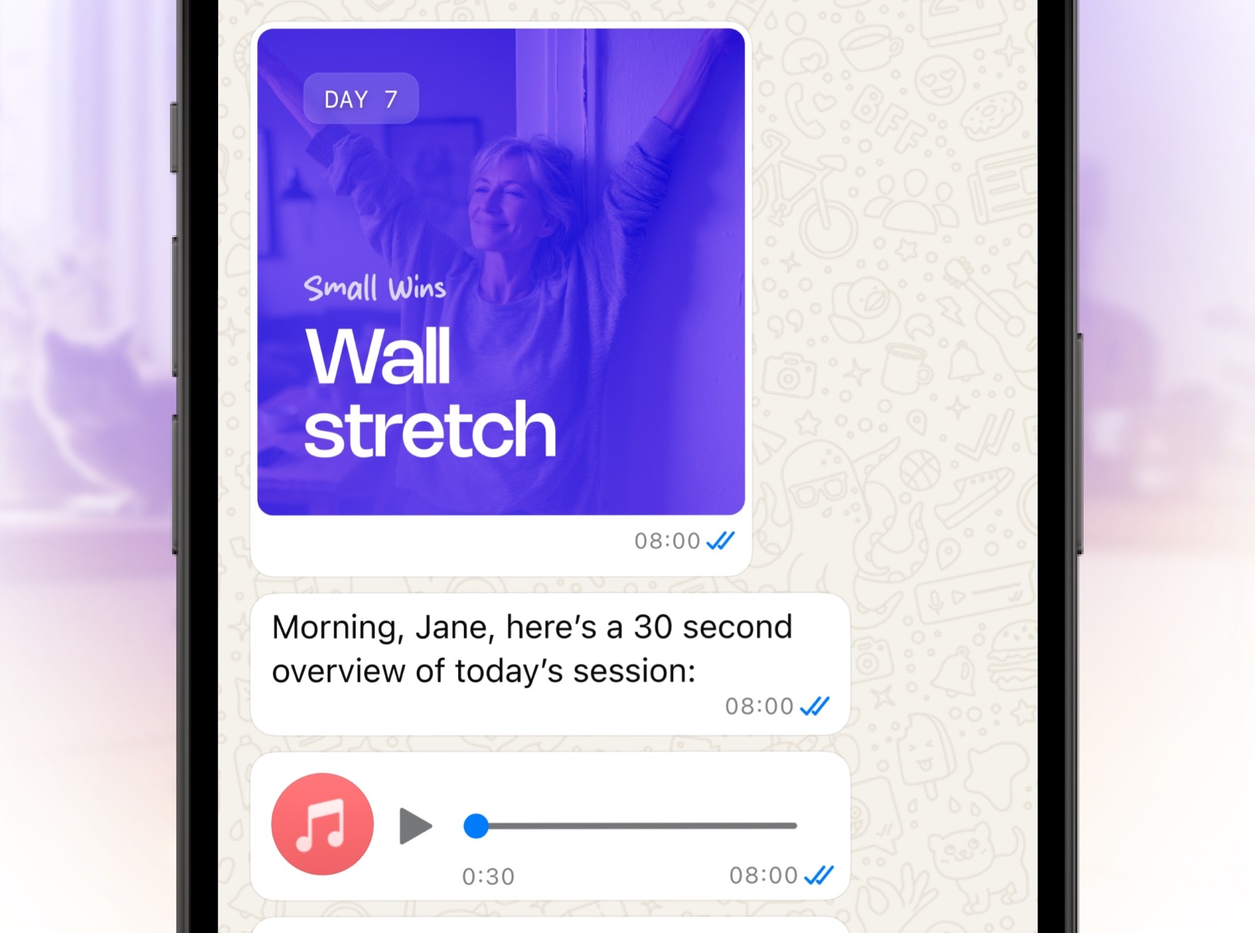 Gentle 7-minute audio workouts sent straight to your WhatsApp.